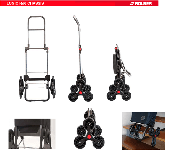 Rolser RD6 Logic indkøbsvogn er bygget til dig, der nemt vil kunne komme op ad trapper og kantsten med minimal kraft. Indkøbsvognen har en 6-hjulet konstruktion, der nemt går op ad trapper med tung belastning. Med RD6 Logic minimerer du ben-, skulder- og rygproblemer og er meget populær blandt dem, der bor i lejligheder uden lift. Gør det nemmere end nogensinde før at handle mad, vaske eller trække andre tunge læs.