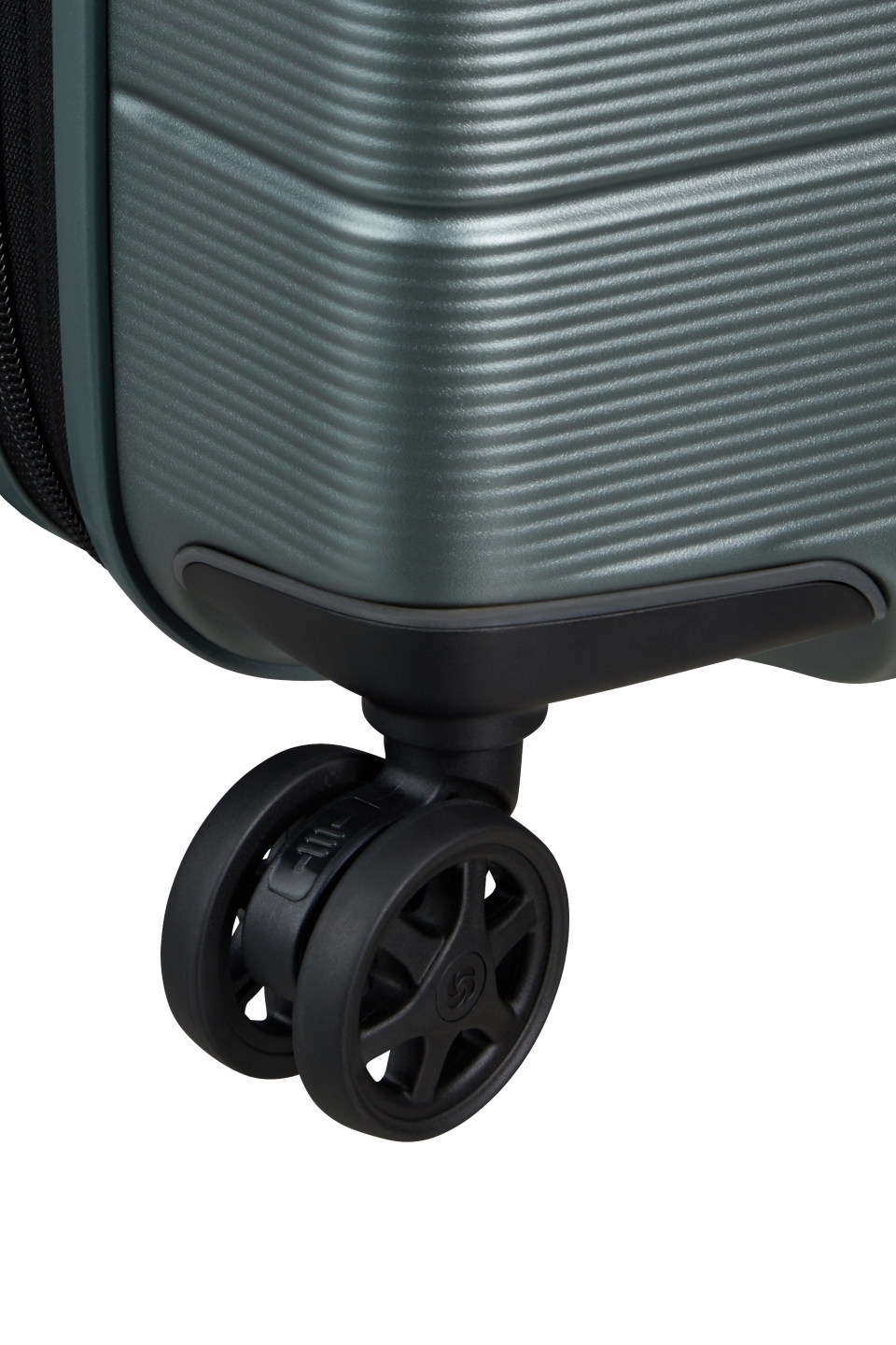 Kabinekufferten har fire affjedrede hjul, der reducerer støj og stød, så du kan håndtere den nemt og bekvemt.
