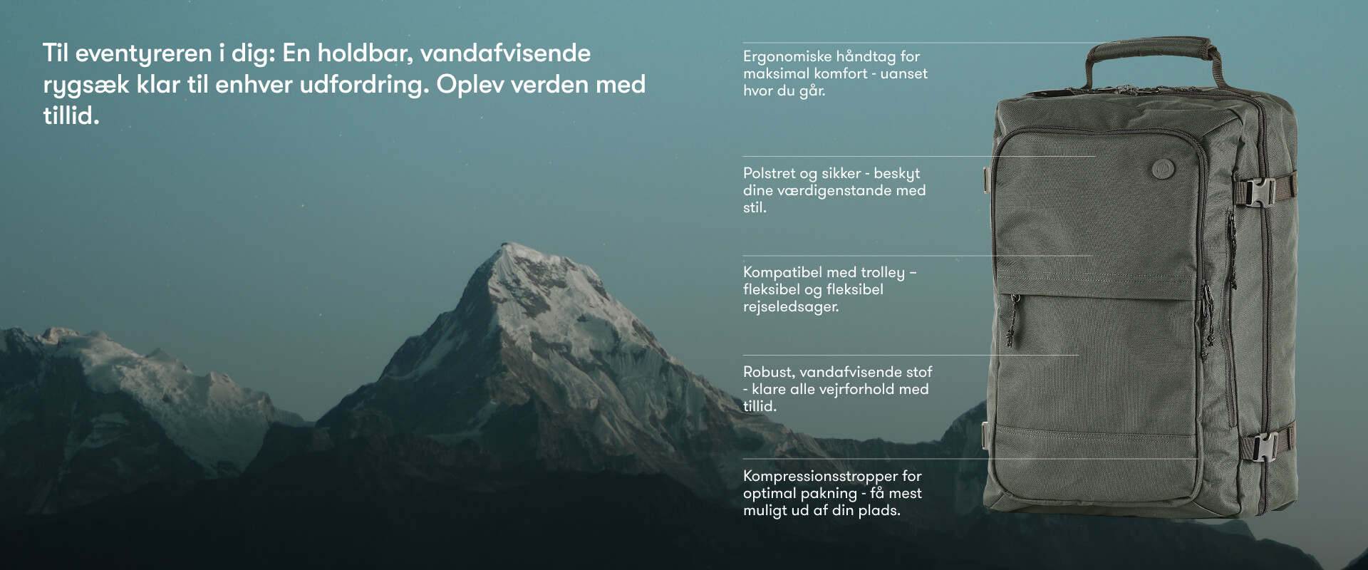 Printisso Expedition er rygsækken til dig, der vil rejse komfortabelt og ergonomisk! Rygsækken fungerer glimrende som erstatning for en kabinekuffert, når du flyver. Du får desuden plads til langt mere bagage og har begge hænder fri. Den polstrede ryg og brystremmen bidrager til ekstra høj komfort. Denne multifunktionelle rygsæk har alt, hvad du behøver for at gøre dit liv nemmere, når du er på farten. Ydersiden er stilren med et diskret Printisso-logo i hjørnet. På forsiden er der to lukkede lommer. Indvendigt i det største rum findes desuden en mindre lomme til opbevaring af småting. På rygsækkens bagside er der endnu et rummeligt rum. De ydre lynlåse er gennemgående udstyret med praktiske og stilrene detaljer. Rygsækken kan låses ved at placere lynlåsene i en separat lås på klappen øverst på rygsækken. Kompressionsstropperne på ydersiden hjælper dig med at effektivisere din pakning.