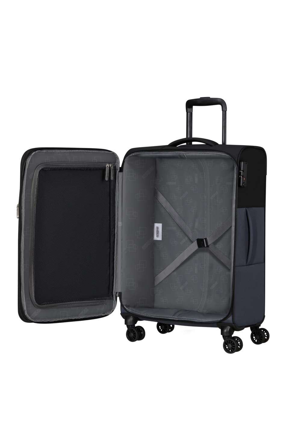 American Tourister Daring Dash er en moderne og smart kuffert med et unikt og legende design. Den praktiske forlomme giver dig ekstra opbevaringsmuligheder til de mindre genstande, som du ønsker at have lige ved hånden. Ydersiden er blød med smagfulde detaljer, der matcher det øvrige design. Derudover er kufferten udvidelig, så du kan tilpasse størrelsen efter dine behov på rejsen! Denne model er mellemstor og passer derfor perfekt til den lidt længere rejse, eller når du blot ønsker at tage ekstra bagage med. Daring Dash er perfekt til dig, der prioriterer både stil og funktionalitet!